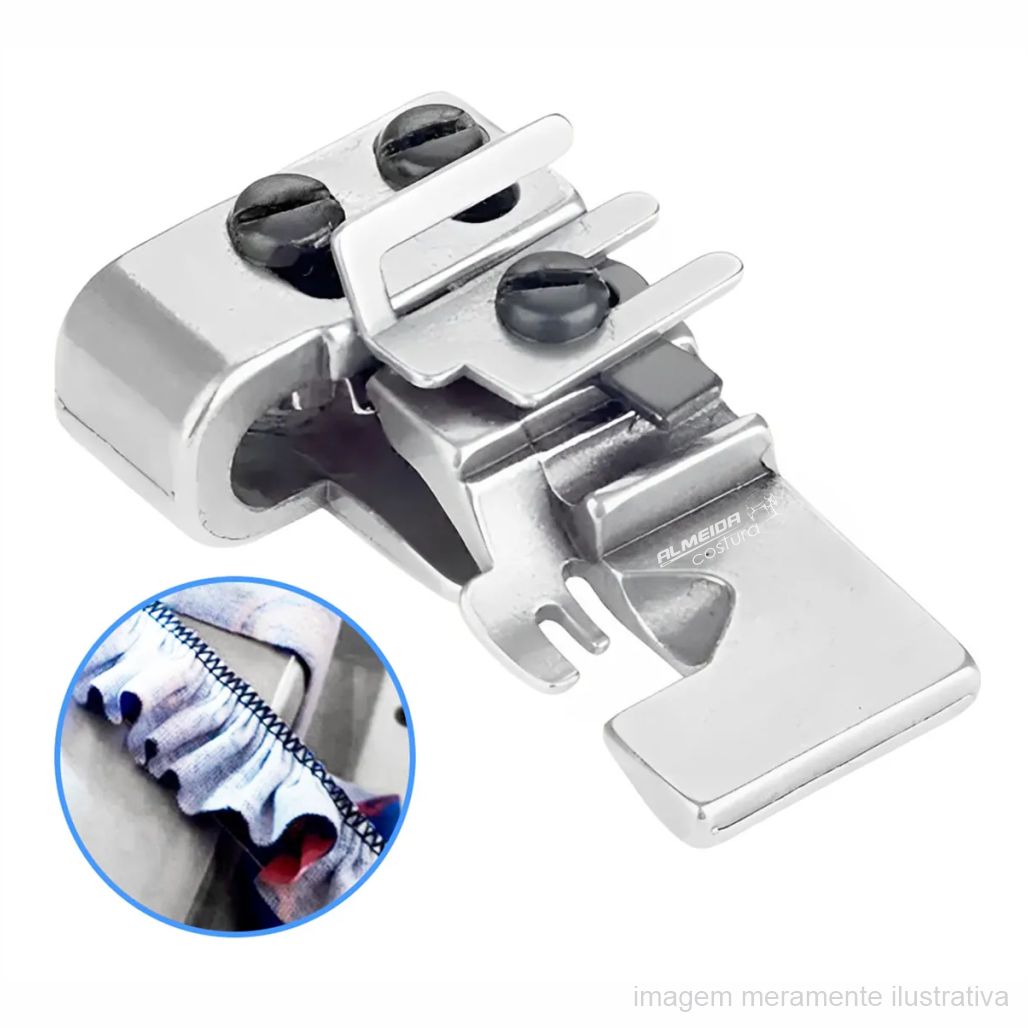 Ajuste a tensão da linha e o comprimento do ponto para variar o efeito do franzido. Indicado para peças que exigem padronização e repetição precisa, como babados e aplicações em série.