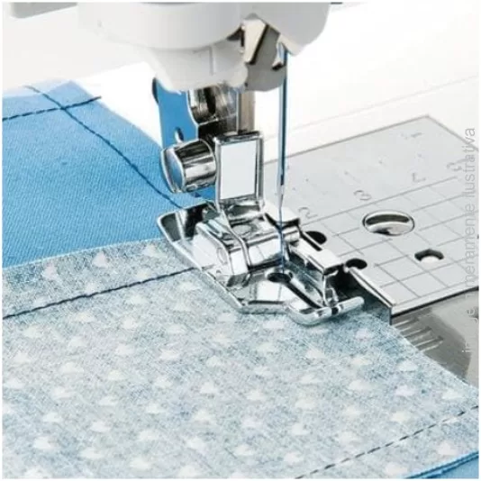 Seu guia metálico lateral mantém a linha de costura perfeitamente alinhada, tornando-o indispensável para quem trabalha com patchwork, quilting, barras, pespontos e costuras paralelas.