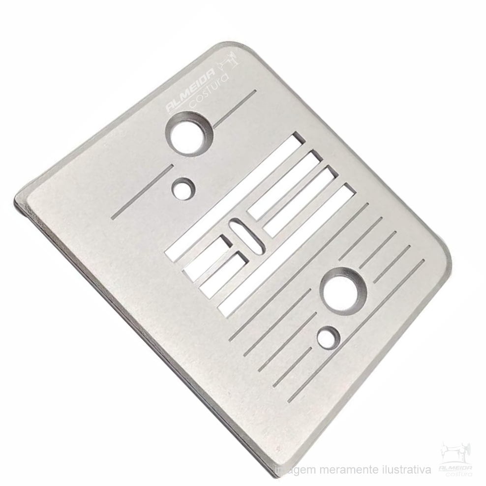 Verifique o alinhamento da chapa com o dente de transporte antes de instalar. Utilize sempre agulhas adequadas ao tecido para evitar danos à peça e garantir melhor desempenho da máquina.