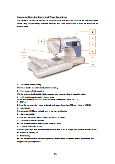 Este manual é voltado para máquinas de bordado computadorizadas com funções similares. Recomenda-se conferir o layout da máquina.