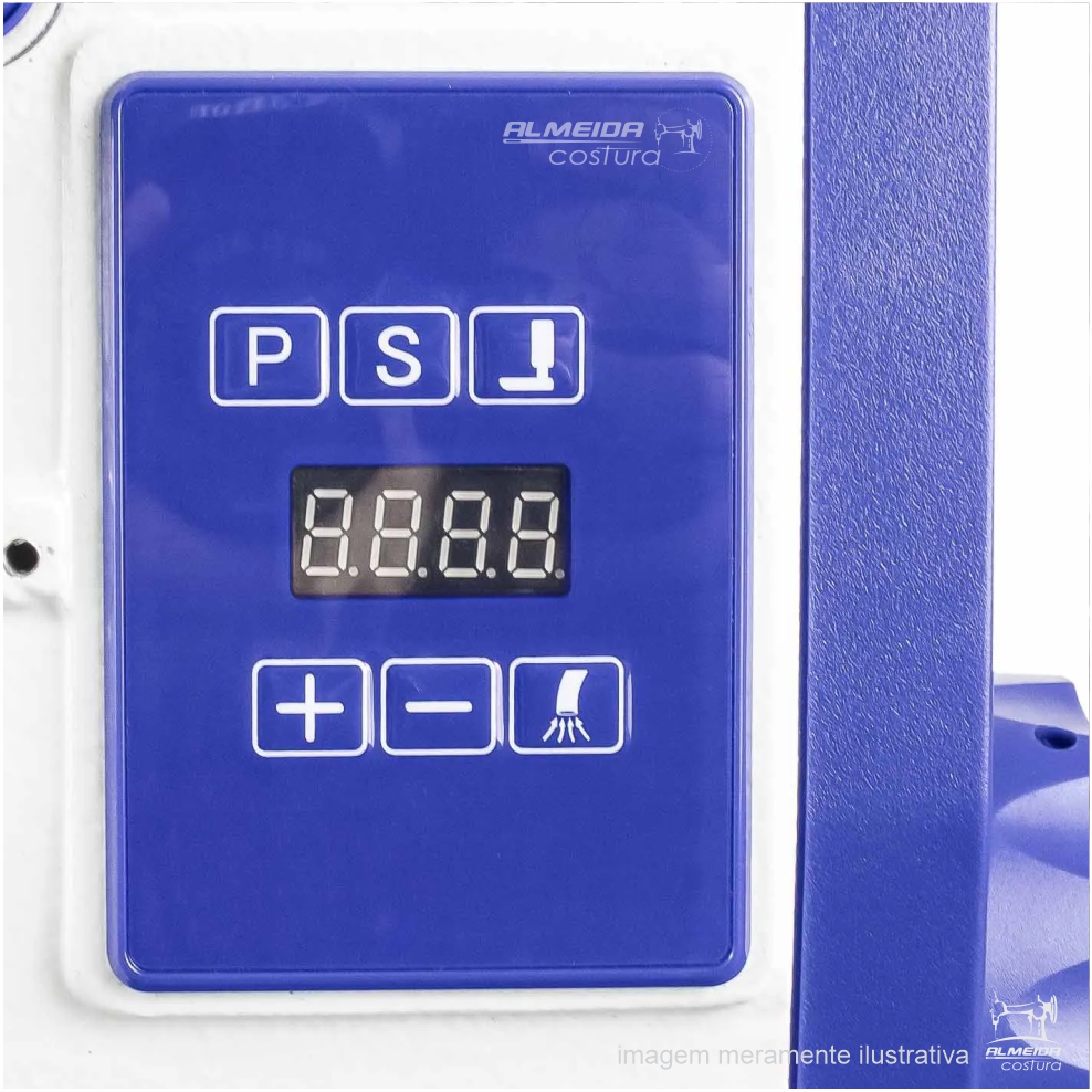 • Funções via painel: Ajuste de velocidade e posicionamento da agulha